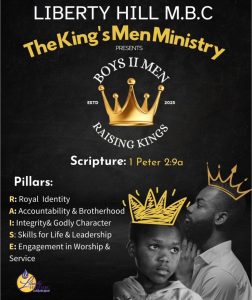 We’re excited to announce the launch of The King’s Men Ministry at Liberty Hill—starting Sunday, September 7, 2025, from 10:00–11:00 a.m.